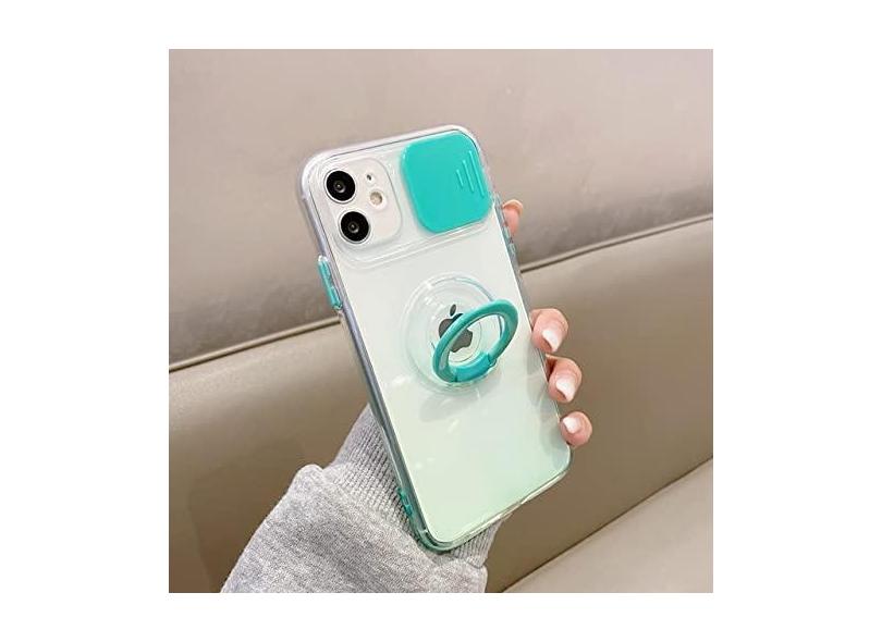 Capa transparente com gradiente de proteção para câmera deslizante para iPhone 14 13 12 11 Pro Max XS X XR 8 7 Plus Suporte de anel com capa transparente, verde, para iPhone X