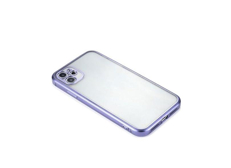 Capa transparente com moldura quadrada revestida de luxo para iPhone 12 11 Pro Max Mini XS XR X 7 8 Plus SE 2 Capa transparente fosca de silicone macio, roxa, para iPhone 11 Pro