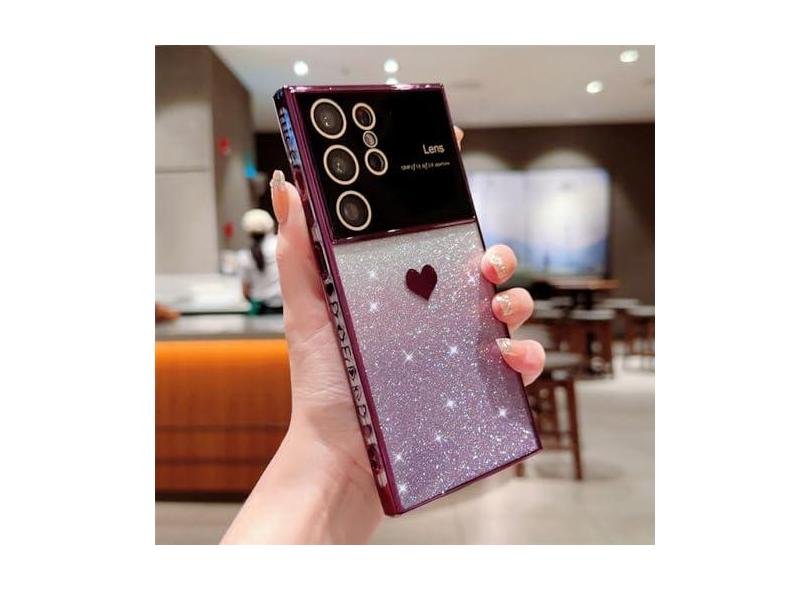 O menor preço encontrado no Brasil para Capa transparente com revestimento gradiente de coração fofo amor para Samsung S23 Ultra S22 Plus S21 S20 FE A52 A53 A54 A23 A24 A14 Capa mole, roxa, para Samsung S23Plus atualmente é R$ 138,00.