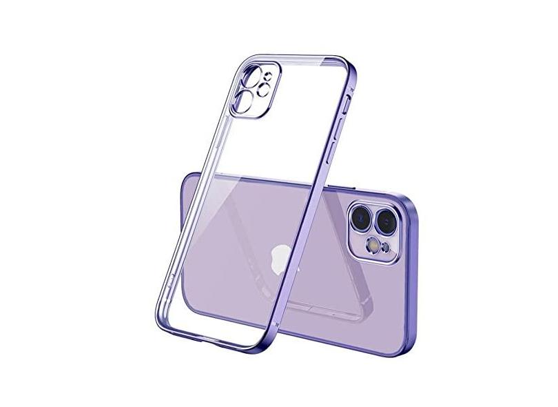 Capa transparente de silicone de moldura quadrada de luxo para iPhone 11 12 13 Pro Max Mini X XR 7 8 Plus SE 2020 Capa traseira transparente, roxa, para iPhone 11
