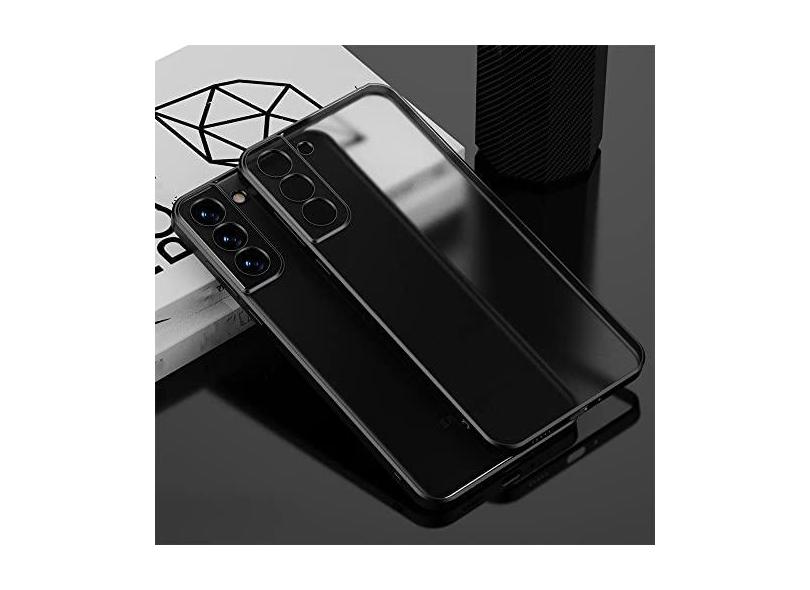Capa transparente de silicone de moldura quadrada folheada de luxo para Samsung Galaxy S21 FE S21 S22 Ultra S21 Plus Coque tampa traseira transparente, preta, para Galaxy S22 Plus
