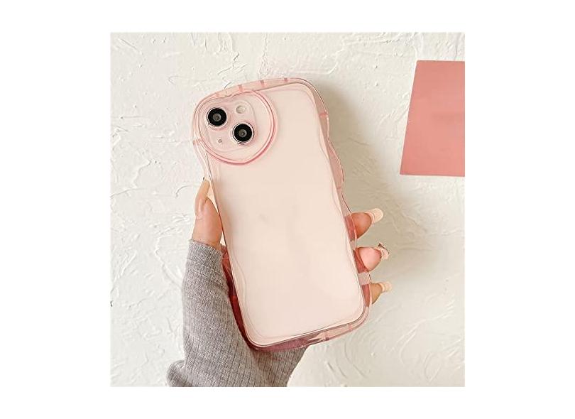 Capa transparente de silicone para iPhone 13 12 11 Pro Max XR X XS Max Love Lente protetora em forma de coração Capa macia em forma de onda, rosa, para iPhone 11