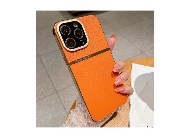 Capa traseira de couro para revestimento comercial para iPhone 13 14 Pro Max 14 Plus Capa híbrida protetora de lente rígida, laranja, para iPhone 13 ProMax