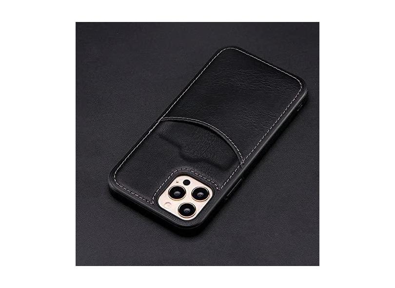 Capa traseira para cartão de crédito para carteira para iPhone 13 Pro Max 12 Mini 11 Xr X Xs 7 8 Plus 14 Pro Max Estojo de couro PU, preto, para iphone 7 8Plus