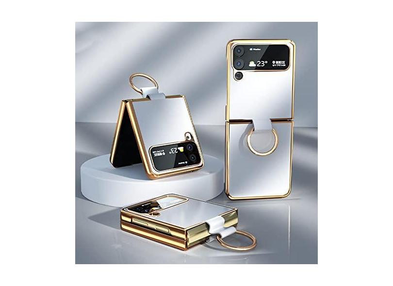 O menor preço encontrado no Brasil para Capa traseira protetora de tela dobrável para Samsung Z Flip 4 Flip 3 Capa de couro Capa para celular com fivela de anel de dedo, branca, para Galaxy Z Flip 4 atualmente é R$ 389,34.
