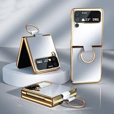 Capa traseira protetora de tela dobrável para Samsung Z Flip 4 Flip 3 Capa de couro Capa para celular com fivela de anel de dedo, branca, para Galaxy Z Flip 4