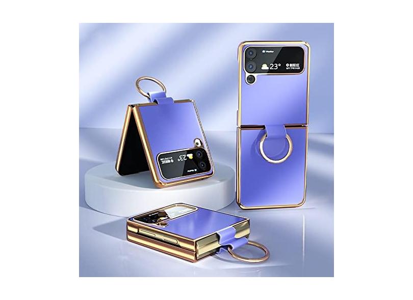 Capa traseira protetora de tela dobrável para Samsung Z Flip 4 Flip 3 Capa de couro Capa para celular com fivela de anel de dedo, roxa, para Galaxy Z Flip 3