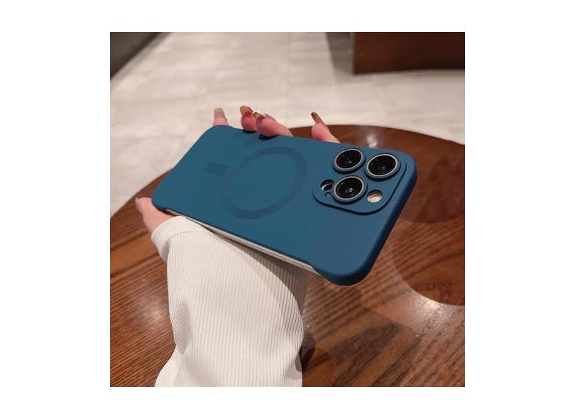 Capa ultrafina sem moldura para iPhone 15 Pro Max 14 Plus 13 12 Lente de carregamento sem fio com proteção de filme capa dura para PC, azul marinho, para iPhone 12ProMax