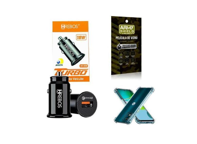 Capinha Moto E13 + Carregador Veicular Turbo + Película 3D - Armyshiel