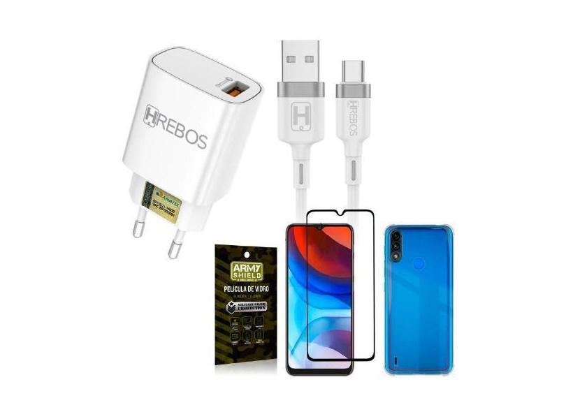 Capinha Moto E7 Power + Carregador Turbo H183 + Película 3D - Armyshie