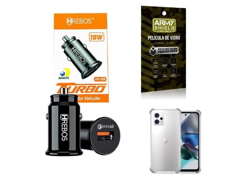 Capinha Moto G23 + Carregador Veicular Turbo + Película 3D