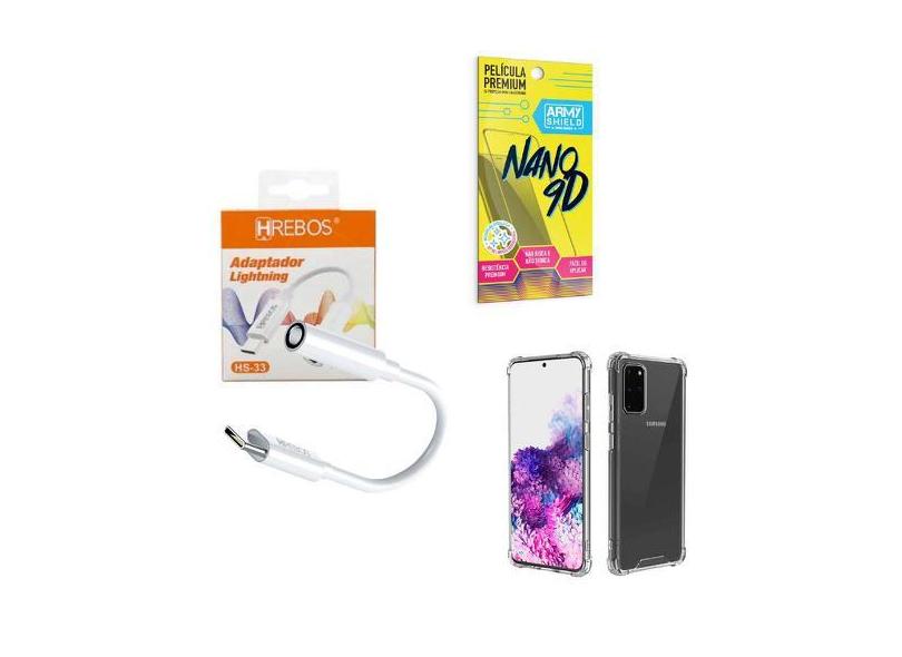 O menor preço encontrado no Brasil para Capinha Samsung S20plus + Adaptador P2 Para Tipo C + Película 9D - Arm atualmente é R$ 59,29.
