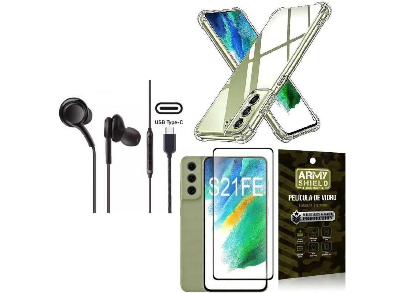 Capinha Samsung S21 Fe + Fone de Ouvido Intra Auricular Preto + Película 3D