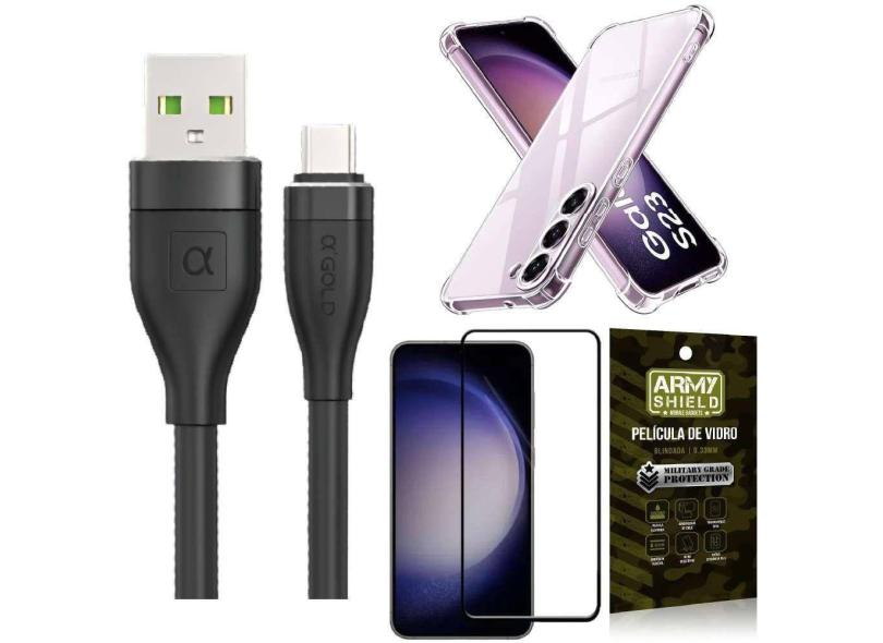 O menor preço encontrado no Brasil para Capinha Samsung S23 + Kit Cabo Tipo C 2 Metros + Película 3D atualmente é R$ 53,89.