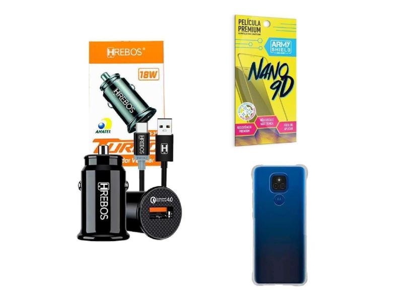 Carregador Veicular + Capinha Motorola E7 Plus + Película 9D