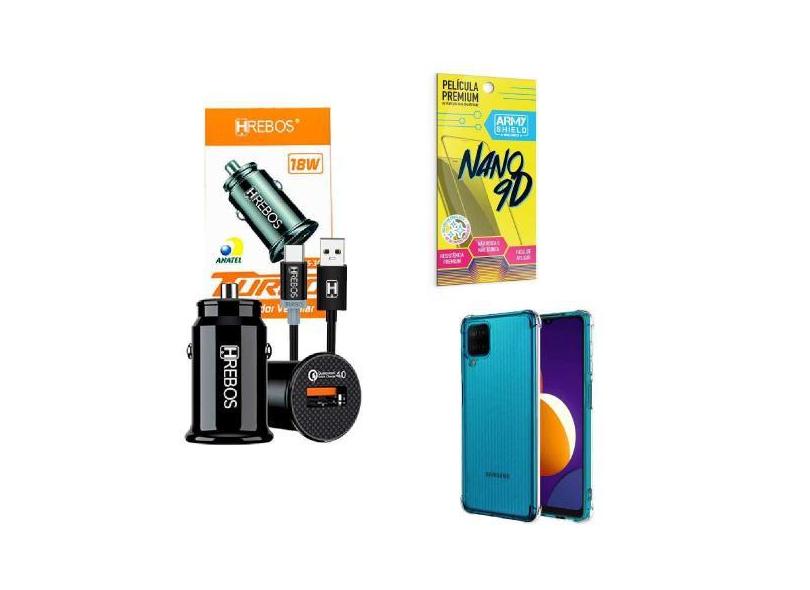 Carregador Veicular Com Capinha Samsung M12 + Película 9D - Hrebos