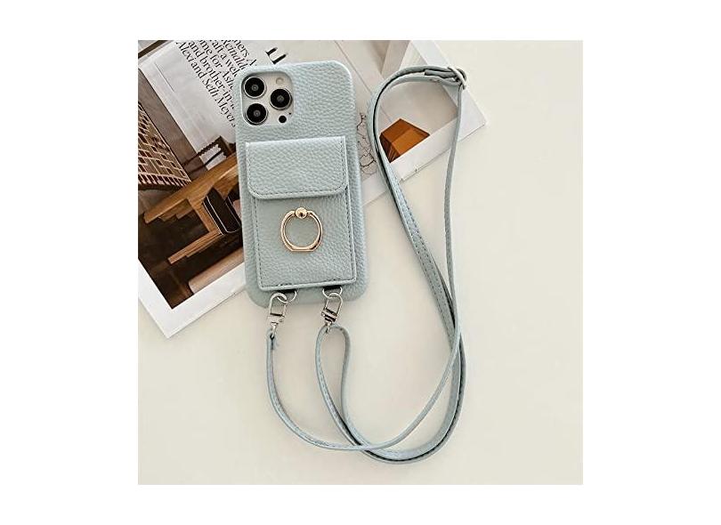 Carteira com Alça de Pescoço Crossbody Capa de Telefone para iPhone 14 13 12 11 Pro Max Mini X XS XR 7 8 Plus Capa de Couro, Ciano, Para iPhone SE 2020