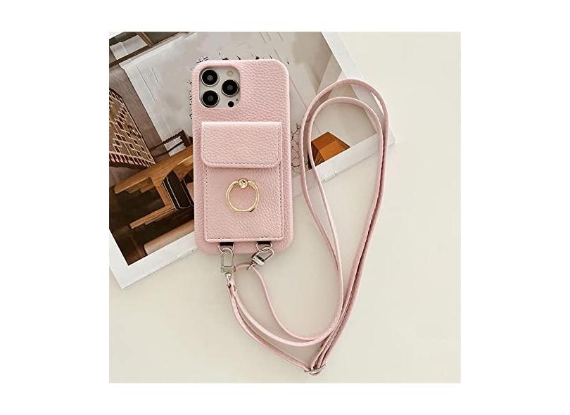 Carteira com Alça de Pescoço Crossbody Capa para Cartão de Telefone para iPhone 14 13 12 11 Pro Max Mini X XS XR 7 8 Plus Capa de Couro, Rosa, Para iPhone SE 2022
