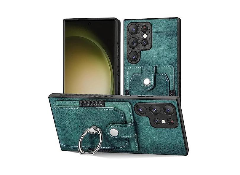 Carteira com slot para cartão capa de telefone para Samsung Galaxy S21 S20 FE S23 S21 Ultra Plus magnético suporte para anel de dedo capa de couro, verde, para Galaxy S21 Ultra