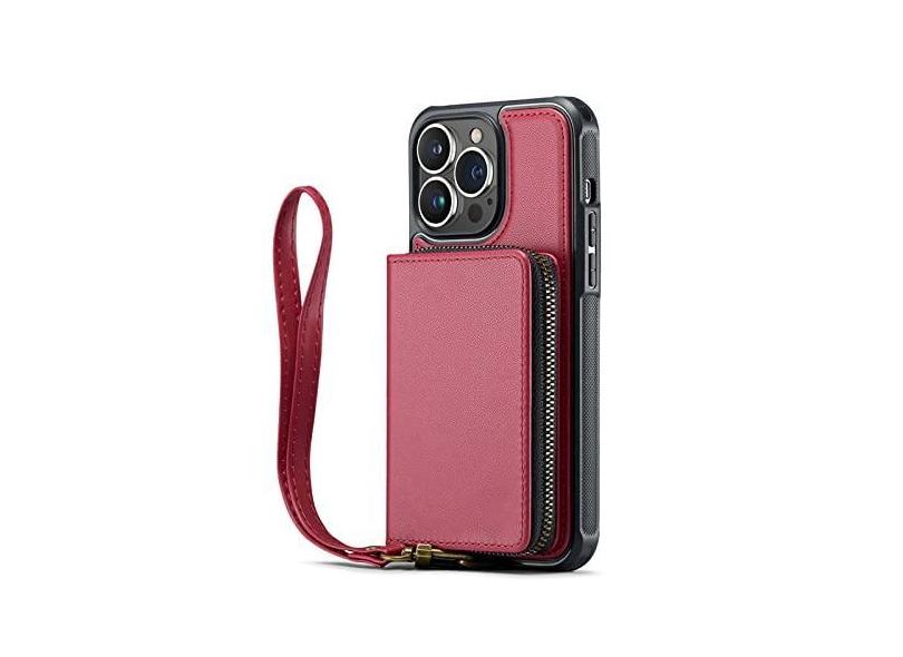 Carteira com zíper capa para cartão de telefone para iPhone 14 13 12 11 Pro Max Couro Flip Stand Cover para Samsung Galaxy S22 Plus S21 Ultra, vermelho, para iphone 14