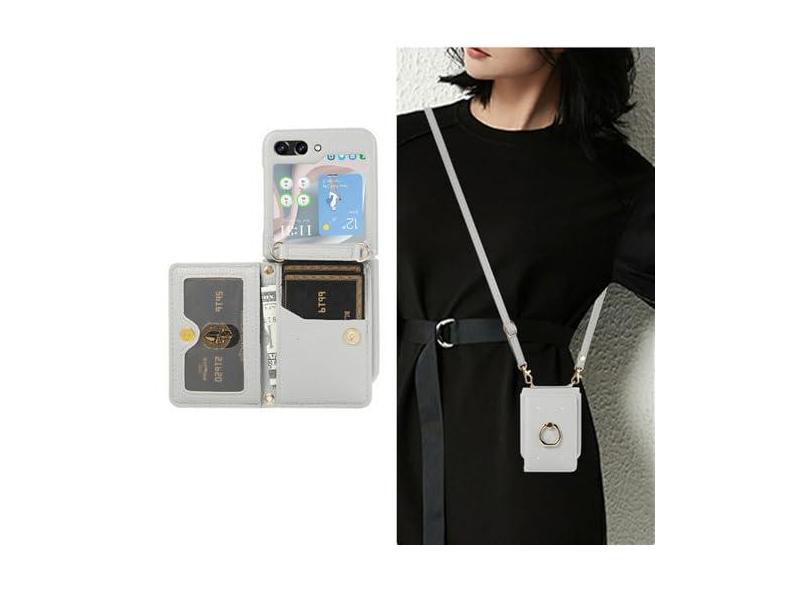 Carteira Crossbody com porta-cartão, capa de telefone para Samsung Galaxy Z Flip 5 4 3 Flip5 Flip4 Flip3 5G, capa de couro PU, azul cinza, para Galaxy Z Flip5
