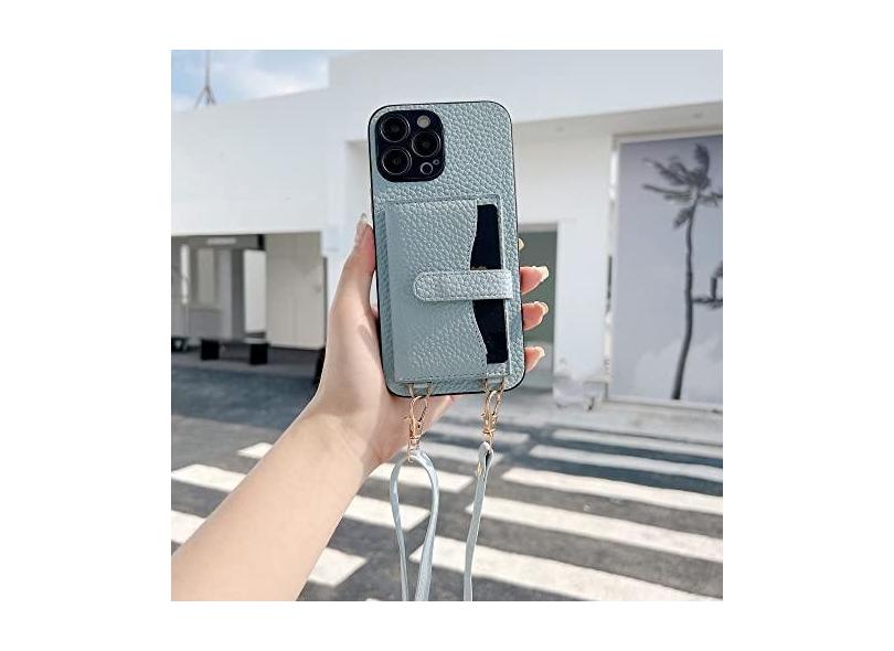 Carteira de bolso de cartão crossbody para iPhone 11 12 13 14 Pro Max X XR XS Max 7 8 Plus Alça de Couro Capa Traseira, Azul Céu, Para iPhone11