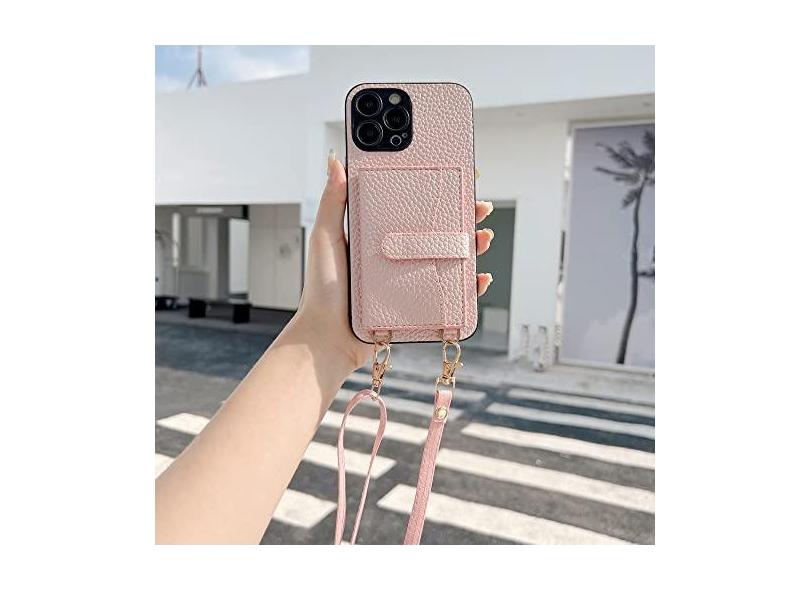 Carteira de bolso de cartão crossbody para iPhone 11 12 13 14 Pro Max X XR XS Max 7 8 Plus Alça de Couro Capa Traseira, Rosa, Para iPhone13 ProMax