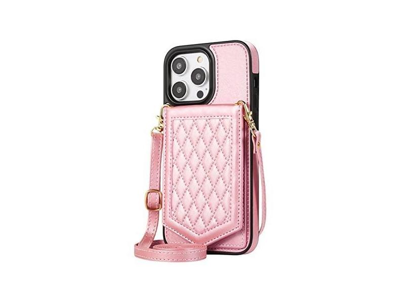 Carteira de couro com espelho para cartões Solt Case para iPhone 14 Pro Max 13 Mini 12 11 SE 2022 XR XS 8 7 6 6S Plus Crossbody Lanyard Cover, ouro rosa, para iPhone 7