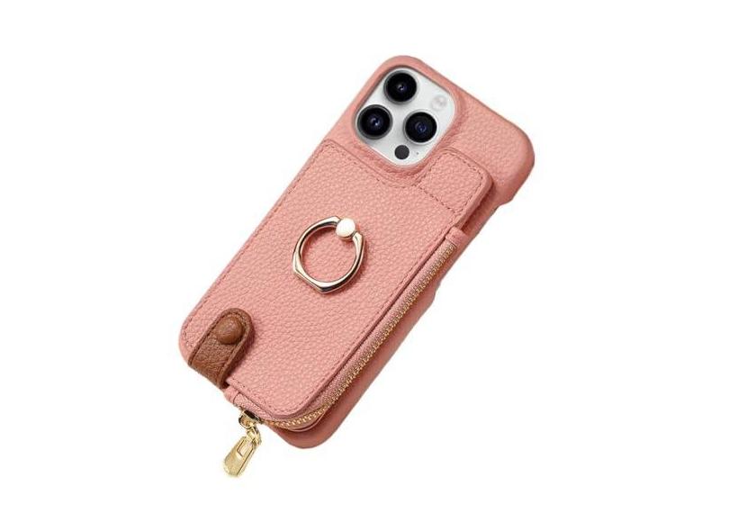 Carteira de couro com zíper com porta-cartões capa de telefone para iPhone 13 12 Mini 15 14 11 Pro Max XS XR X 7 8 Plus Capa com suporte de anel, rosa, para iPhone 15 Plus