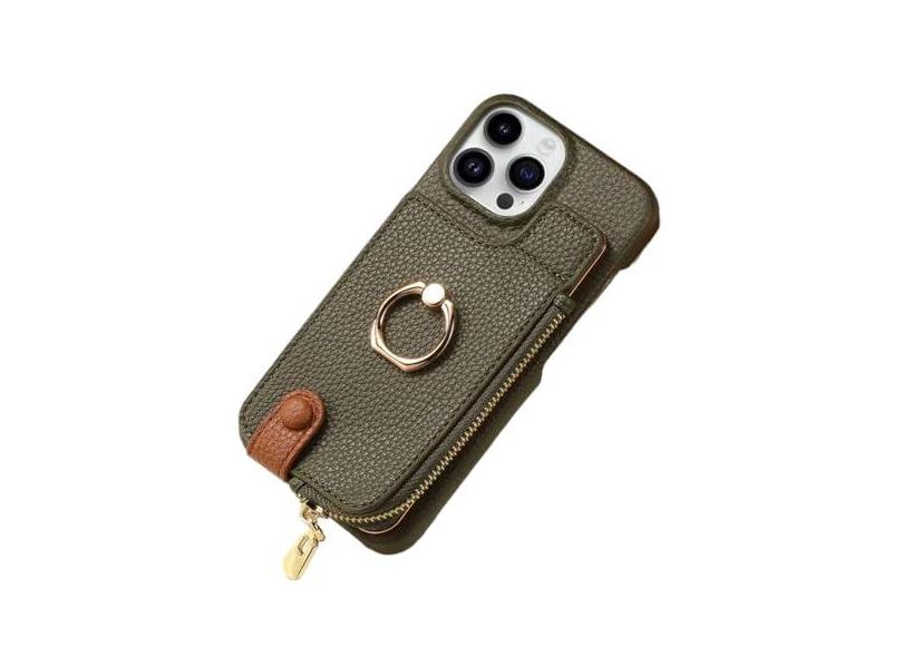 Carteira de couro com zíper com porta-cartões capa de telefone para iPhone 13 12 Mini 15 14 11 Pro Max XS XR X 7 8 Plus Capa com suporte de anel, verde militar, para iPhone XR