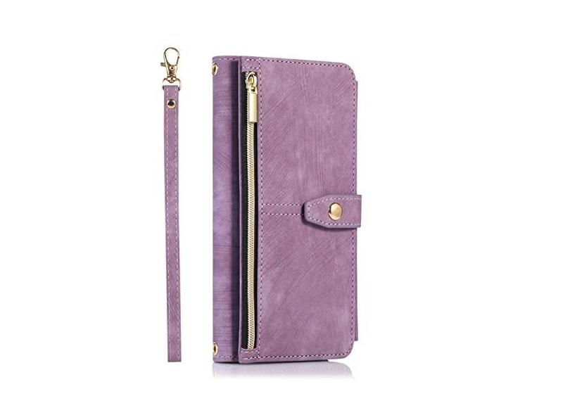 Carteira de couro de luxo com zíper para iPhone 13 Pro MAX 11 12 Mini X XS XR 6 6S 7 8 Plus SE 2022 9 Suporte para cartões, roxo, para iPhone 11