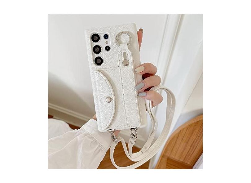 Carteira de Couro Estojo Cordão Tiracolo Para Samsung S23 Ultra S22 Plus S21 S20 S10 S9 S8 Nota 20 10 Pro 9 Alça de Pulso Capa, Branco, Para Nota 10