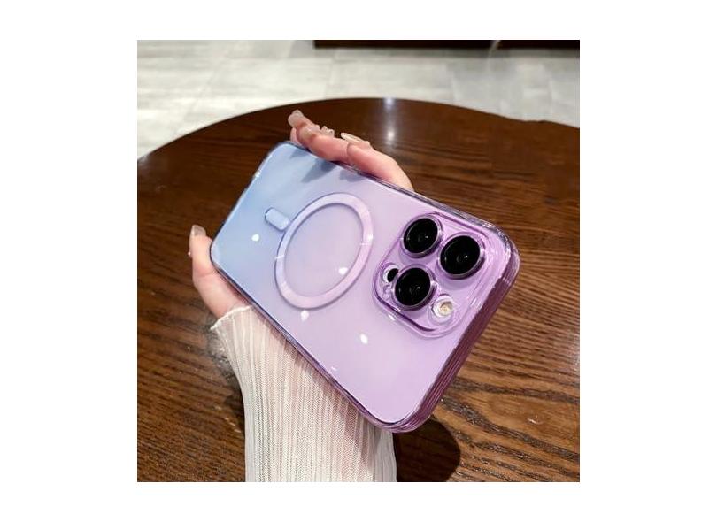 Caso de carga sem fio padrão gradiente de luxo para iphone 11 12 13 14 15 pro max plus capa magnética transparente macia, roxo, para iphone 12
