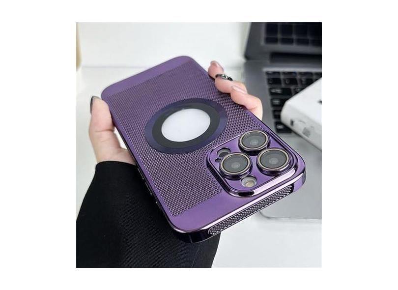 Caso de dissipação de calor de malha de grade magnética chapeada para iphone 15 11 12 13 14 pro max plus capa dura, roxo escuro, para iphone 11 pro