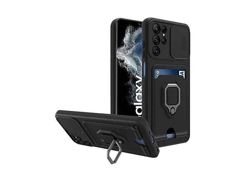 Caso de suporte de anel de câmera deslizante para Samsung S23 S22 Ultra Plus A23 A33 A53 A73 A52 A72 A32 A12 A51 A71 A31 A50 Saco de cartão de silicone, preto, para A12