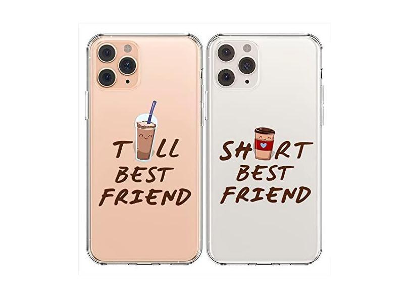 Cavka Capa de telefone compatível com - iPhone 12 Pro - iPhone 12-6,1 polegadas para casais altos e curtos melhores amigos capa transparente fofa metas de amizade namorada melhor amiga melhor amiga café engraçado