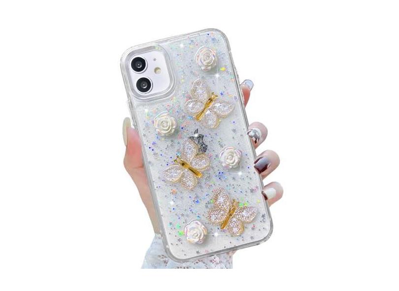 CEOKOK Capa para iPhone 11 3D Borboleta Floral Transparente com Design Bonito Glitter Estrelas Brilhantes Fina Flexível TPU À Prova de Choque À Prova de Poeira Capa de Telefone Estética Feminina