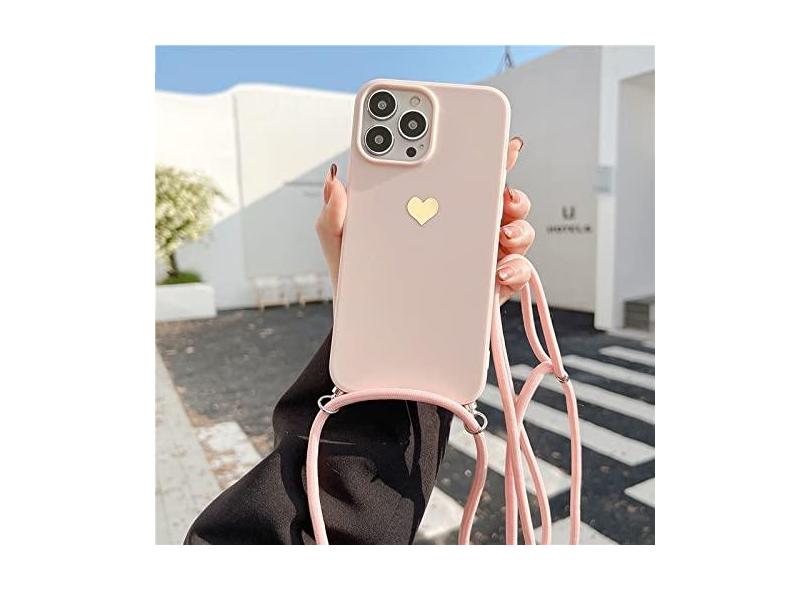Chapeamento Amor Colar Crossbody Corda Corda Estojo de Telefone Macio Para iPhone 13 12 Pro Max 11 Mini XS XR X 8 7 Plus SE 20 Capa, Rosa, para iPhone 12 mini