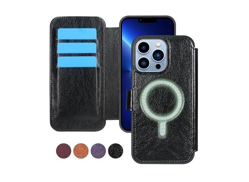 CMIDUS Capa carteira com bloqueio de RFID para iPhone 13 Pro Max 5G 6,7 polegadas compatível com MagSafe carregamento sem fio couro PU capa flip protetora com compartimentos para cartões e suporte