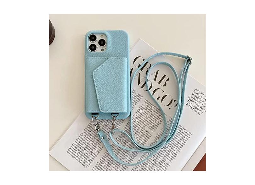 Colar cordão corrente capa de telefone de couro para iPhone 14 13 12 11 Pro Max 7 8 Plus SE XR XS Max Corda Corda com capa carteira, azul, para iPhone 11Pro Max