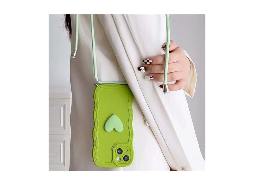 Colar crossbody cordão amor coração onda borda capa macia para iphone 15 14 pro max 13 12 11 x xs xr 7 plus capa, verde, para iphone 14pro