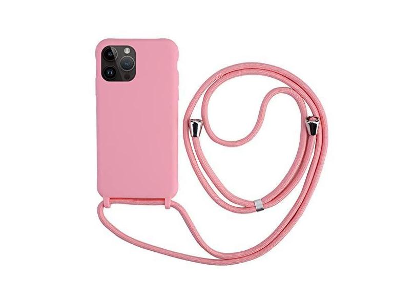 Colar tiracolo transversal com cordão capa de telefone para iPhone 14 Plus 13 12 Mini 11 Pro XS Max XR X Silicone TPU macio Capa traseira, rosa, para iphone 14 Pro
