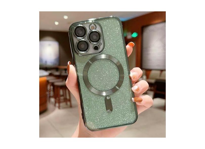 Com protetor de lente capa de telefone galvanizada para iPhone 15 14 13 12 11 Pro Max para capa de glitter para carga sem fio, verde escuro, para iPhone 11Pro
