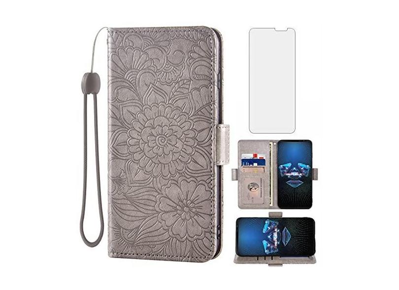 Compatível com Asus ROG Phone 5/5 Pro/5s/5s Pro/5 Ultimate Capa carteira protetora de tela de vidro temperado, suporte para cartão, capa flip magnética de couro para ROG Phone5 Phone5s feminino