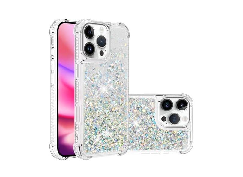 COTDINFOR Capa para iPhone Pro Max 2024 Capa para iPhone Pro Max 2024 Capa de telefone transparente fofa e transparente flutuante areia movediça à prova de choque para iPhone Pro Max 2024 17.5 cm Love