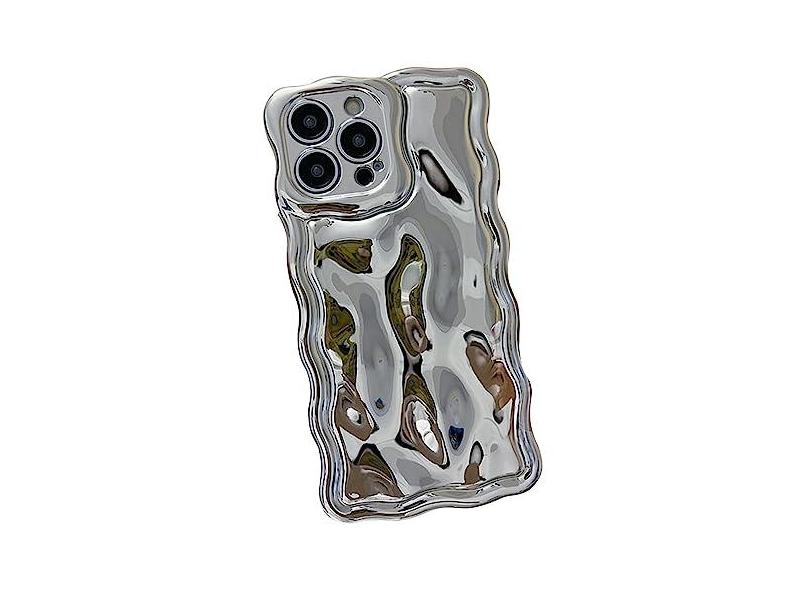 Cutecasee Capa de celular compatível com iPhone para mulheres/meninas, linda prata galvanizada 3D, textura encaracolada, ondulada, antiarranhões, à prova de choque, proteção contra quedas para iPhone