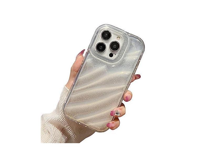Cutecasee Capa de telefone compatível com iPhone 15 Pro para mulheres/meninas, com glitter, ondulação de água, transparente, antiarranhões, à prova de choque, macia, cacheada, ondulada, para iPhone 15