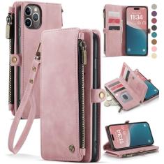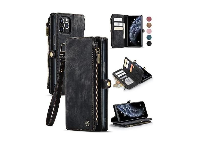 Defencase Capa carteira para iPhone 11 Pro Max, capa carteira para iPhone 11 Pro Max para mulheres e homens, capa de telefone de couro PU durável flip magnética alça de pulso com zíper para cartão