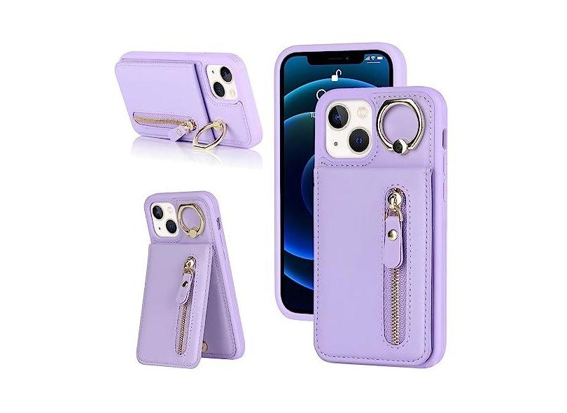 DEYHU Capa para iPhone 13 Mini com suporte para cartão para mulheres, capa carteira para iPhone 13 Mini com cartão de crédito com anel de suporte, zíper, à prova de choque, capa fina para iPhone13mini