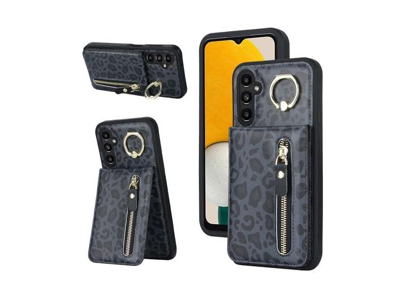 DEYHU Capa para Samsung Galaxy A13 5G com suporte para cartão para mulheres, capa para celular Samsung Galaxy A13 5G com cartão de crédito com anel de suporte, zíper, à prova de choque, capa fina -